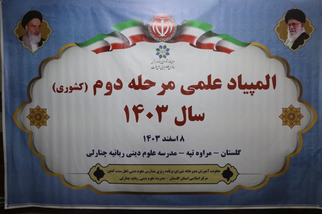 این دوره از رقابتهای علمی در مدرسه علمیه ربانیه چنارلی – مراوهتپه به میزبانی این مرکز علمی برگزار گردید و فضایی علمی، رقابتی و بسیار پرشور را رقم زد. در این مراسم علمی–آموزشی، شرکتکنندگان برتر از استانهای مختلف کشور در رشتههای ادبیات عرب (احناف و شوافع)، فقه و اصول فقه به رقابت پرداختند و در نهایت نفرات برگزیده معرفی شدند. نتایج مرحله نهایی سومین دوره المپیاد علمی مدارس علوم دینی اهلسنت کشور اعلام شد.